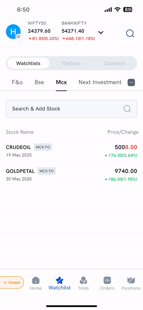 Trailing SL is available across all segments (Equity, NSE/BSE FO, MCX) and product types (Intraday, MTF, Intraweek, Delivery).