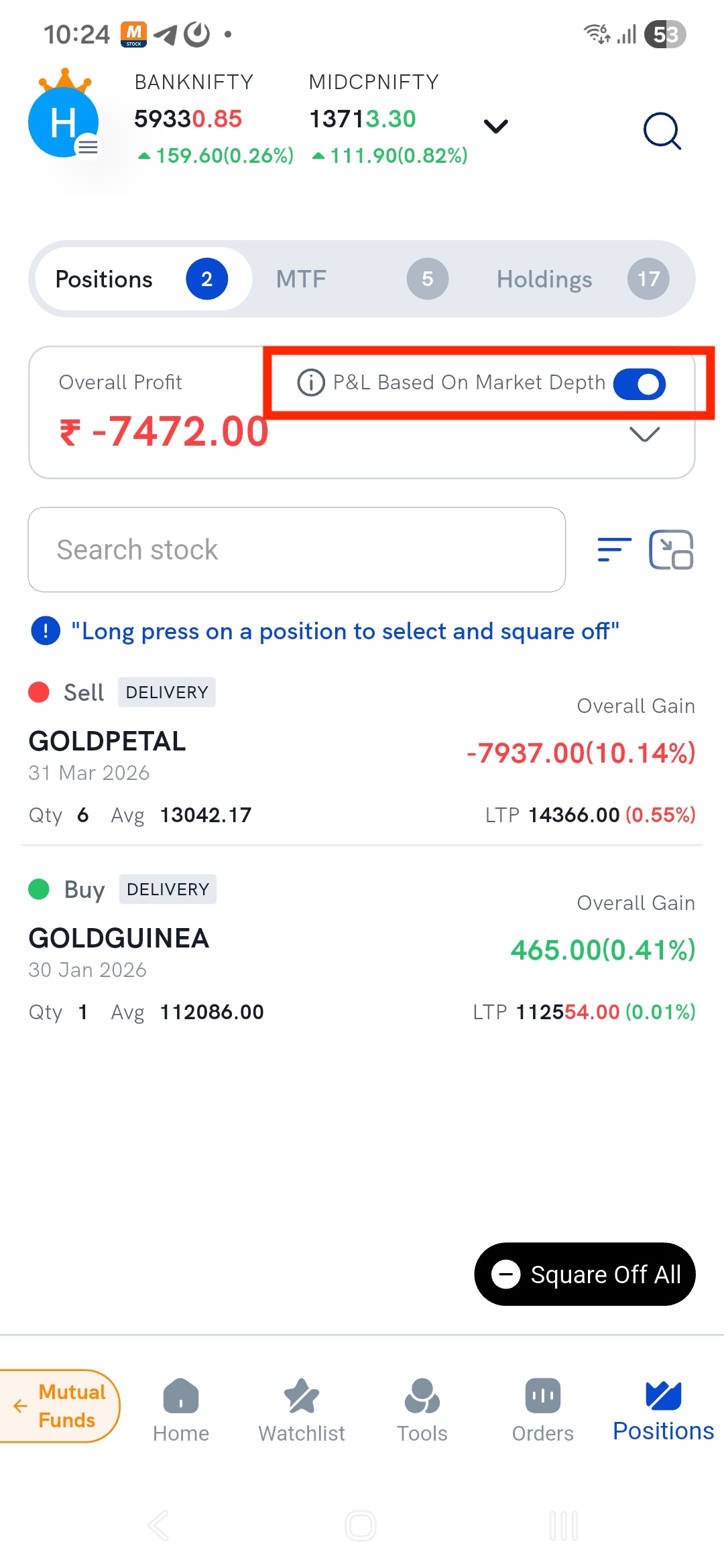 The P&L Based on Market Depth feature helps solve this issue by calculating your P&L based on actual available bids and offers, not just the LTP.